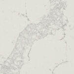 Classic elegance of a fethered dove-white base, contrasted by broad light-grey veins in a clouded swirl that is absorbed deep into the surface, like mist.